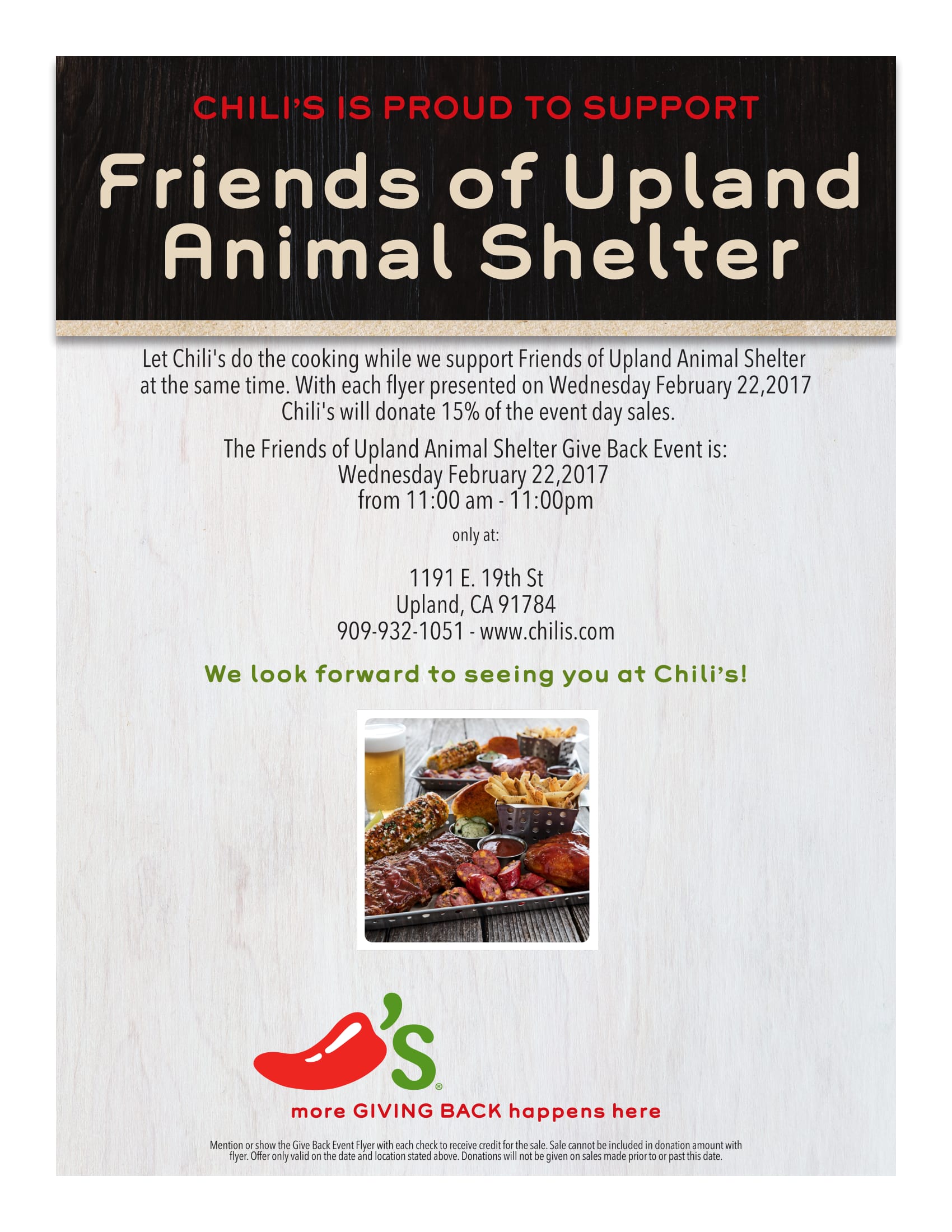 Animal Shelter Special Events. Friends of Upland Animal Shelter Friends is a 501 c3 non-profit organization that is partnered with the City of Upland to perform shelter operations and adoptions. How You Can Help.